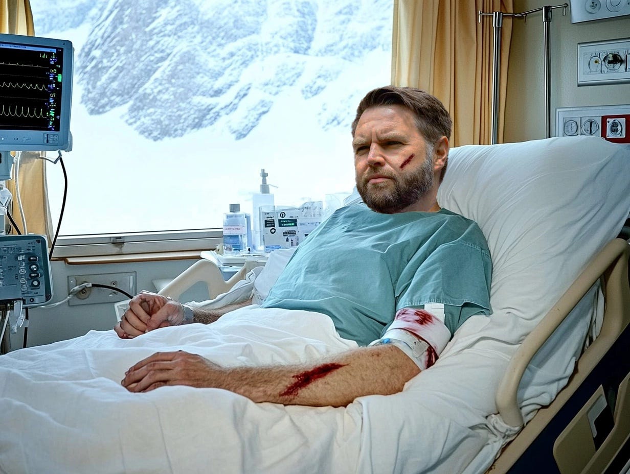 Bro... that red slash on Vance's forearm in the hospital pic is a telltale tattoo of Tren de Aragua. The FBI circulated a poster on it... I think. Anyway, the bloody imagery is violent, and JD should be immediately deported to Venezuela. No need to ask any further questions or check my work. These are my desires. You can't just ignore them.
