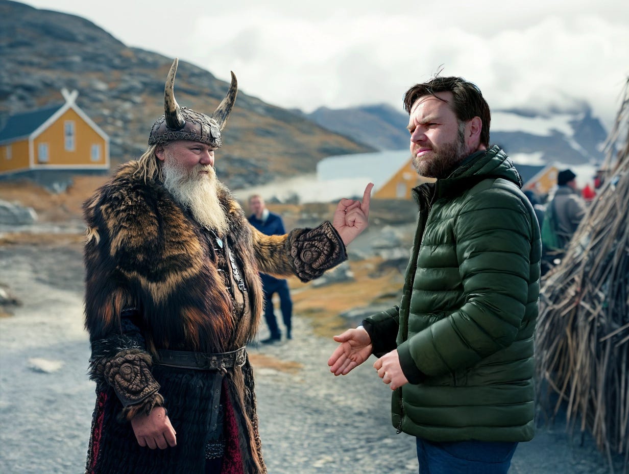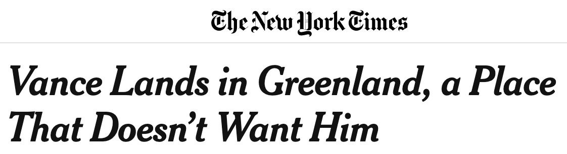 Greenland welcomed Vice President JD Vance last week—though in this context, “welcome” has the same meaning as when my wife says, “I welcome your feedback on the items I’m considering for purchase.” Here’s how the New York Times told it: